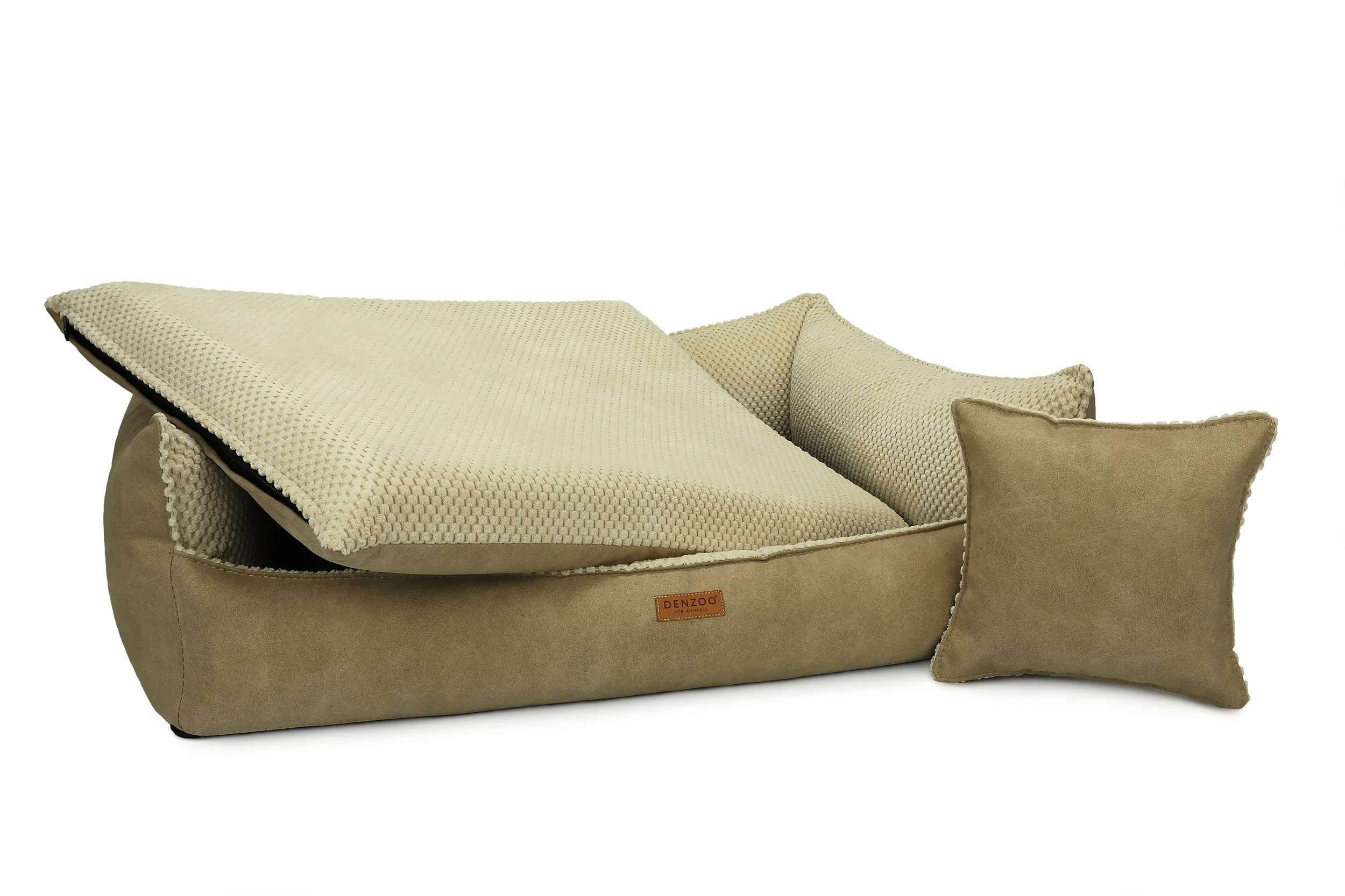 - Pokrowiec legowiska jest w 100% rozbieralny – każdy element (materac i boki) można wyjąć dzięki zamkom błyskawicznym.