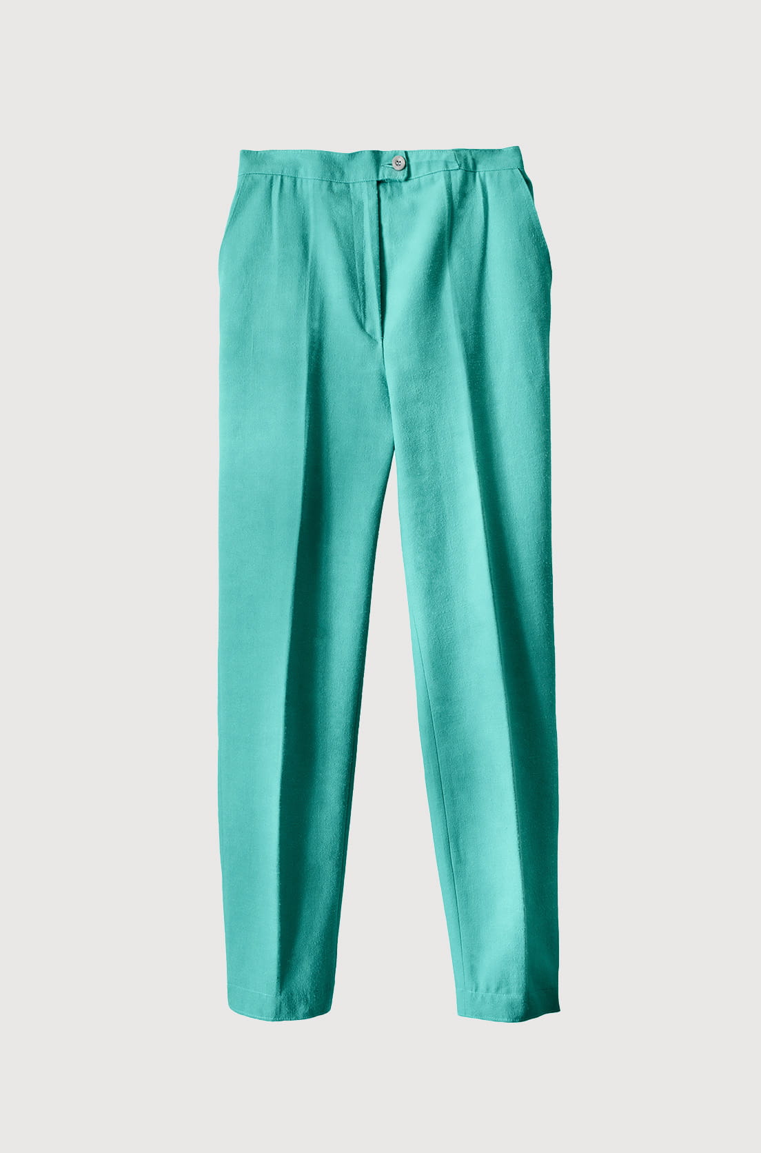 Lniane spodnie to podstawa w letniej garderobie. Dostępne są w dwóch modnych kolorach: antycznego różu i miętowym. Spodnie mają luźny fason i długość 7/8, więc sięgają nieco powyżej kostek. Skład materiału to 55% len i 45% wiskozy, przez co są wygodne, przewiewne i nosi się je komfortowo nawet przy wyższych temperaturach. Dzięki domieszce wiskozy spodnie są łatwe w prasowaniu i mniej się gniotą, co pozwala utrzymać schludny wygląd przez cały dzień.