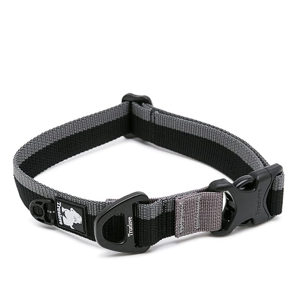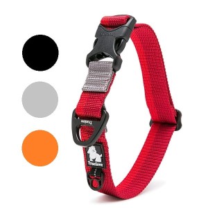 Klasyczna, lekka i wytrzymała nylonowa obroża z wysokiej jakości zaciskami ze stopu aluminium.
