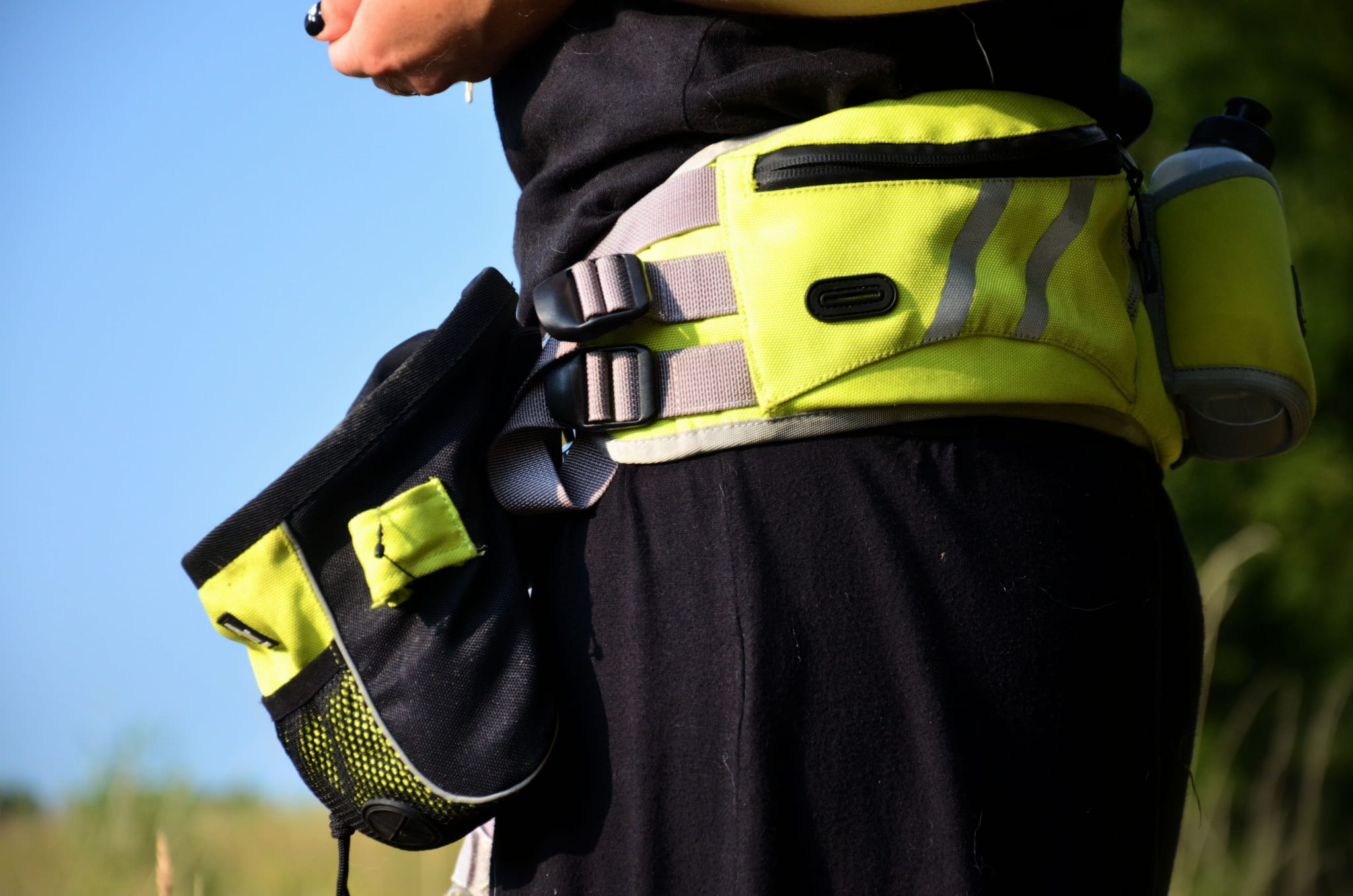Saszetka na snaki z siateczkową kieszonką do przełożenia woreczków. Niezbędna na treningu, przydatna również podczas codziennych spacerów.