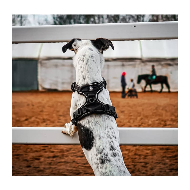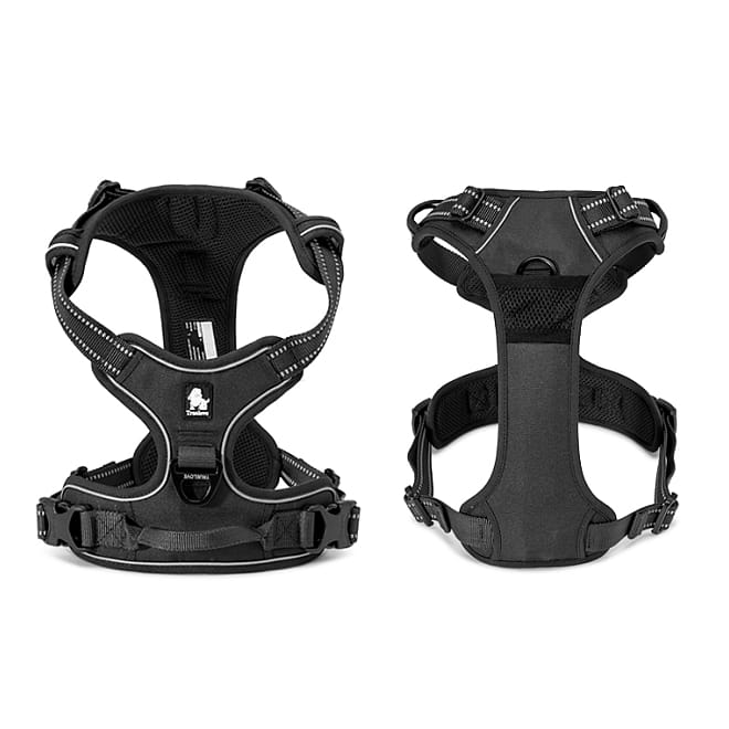 - Easy-walk – przednie zapięcie pomaga okiełznać psy, które ciągną na smyczy, ułatwiając naukę spokojnego chodzenia.