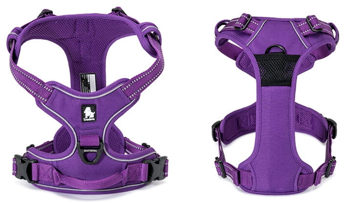 - Easy-walk – przednie zapięcie pomaga okiełznać psy, które ciągną na smyczy, ułatwiając naukę spokojnego chodzenia.