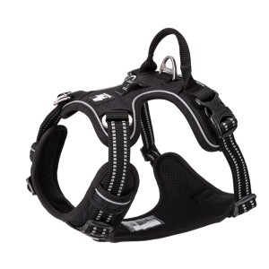 Intensywny czarny kolor nadaje szelkom sportowego, nowoczesnego charakteru. Szelki prezentują się estetycznie zarówno w miejskiej dżungli, jak i w lesie czy na plaży – można je z łatwością dopasować do smyczy i innych akcesoriów psa.