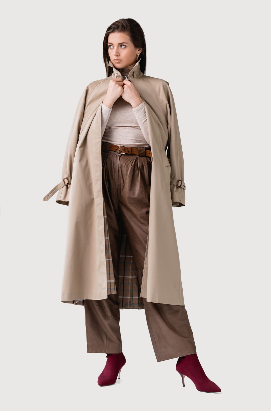 Nasz beżowy trencz to nie tylko funkcjonalne i komfortowe ubranie, ale także stylowy dodatek do Twojej jesiennej garderoby. Jego beżowy kolor jest neutralny i łatwo komponuje się z innymi elementami ubioru. Długi fason trencza jest doskonały na chłodniejsze dni, a długie rękawy zapewniają ciepło i wygodę noszenia.
