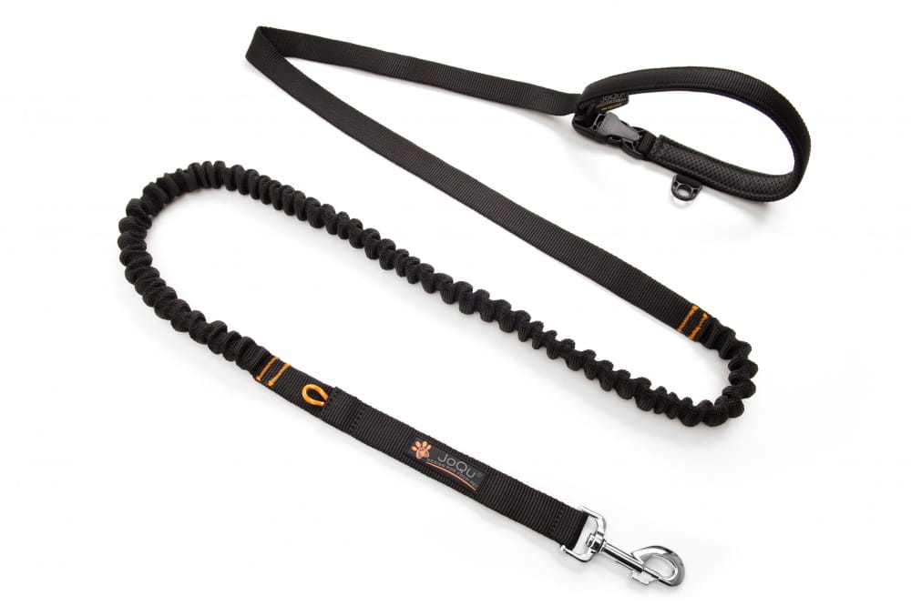 Czarna smycz dla psa z amortyzatorem JoQu® Two Runners Leash